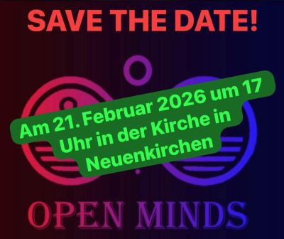 Am diesem Samstag lädt der Kirchenvorstand zusammen mit dem Ortsrat Neuenkirchen zum Konzert der schon weit über Liebenburg hinaus bekannten Band Open Minds ein. Die Musik über Rock, Pop und Traditionel versteht zu begeistern und verspricht einen stimmungsvollen Abend. Für Getränke und Snacks wird gesorgt.